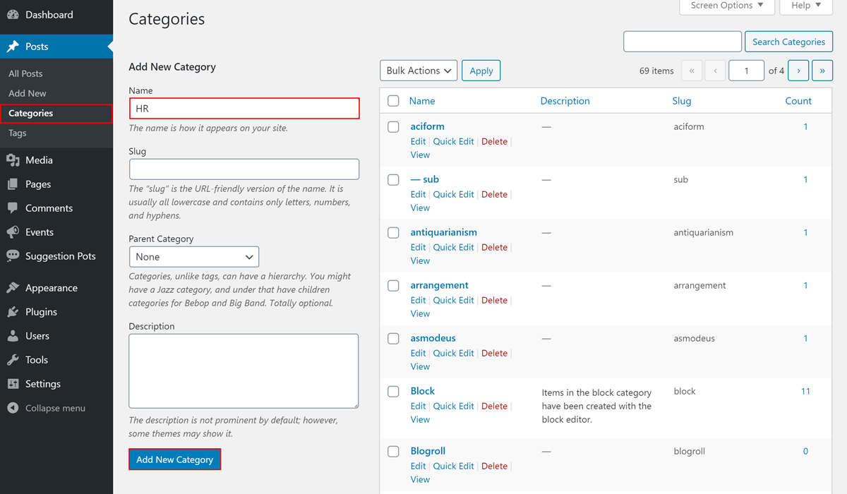 - Click on Add New Category