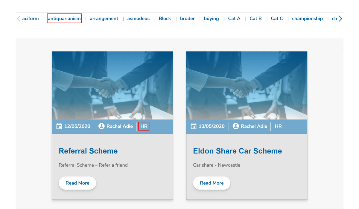 Categories are shown in the Latest News block on the home page and allow the user to filter the posts by that category.