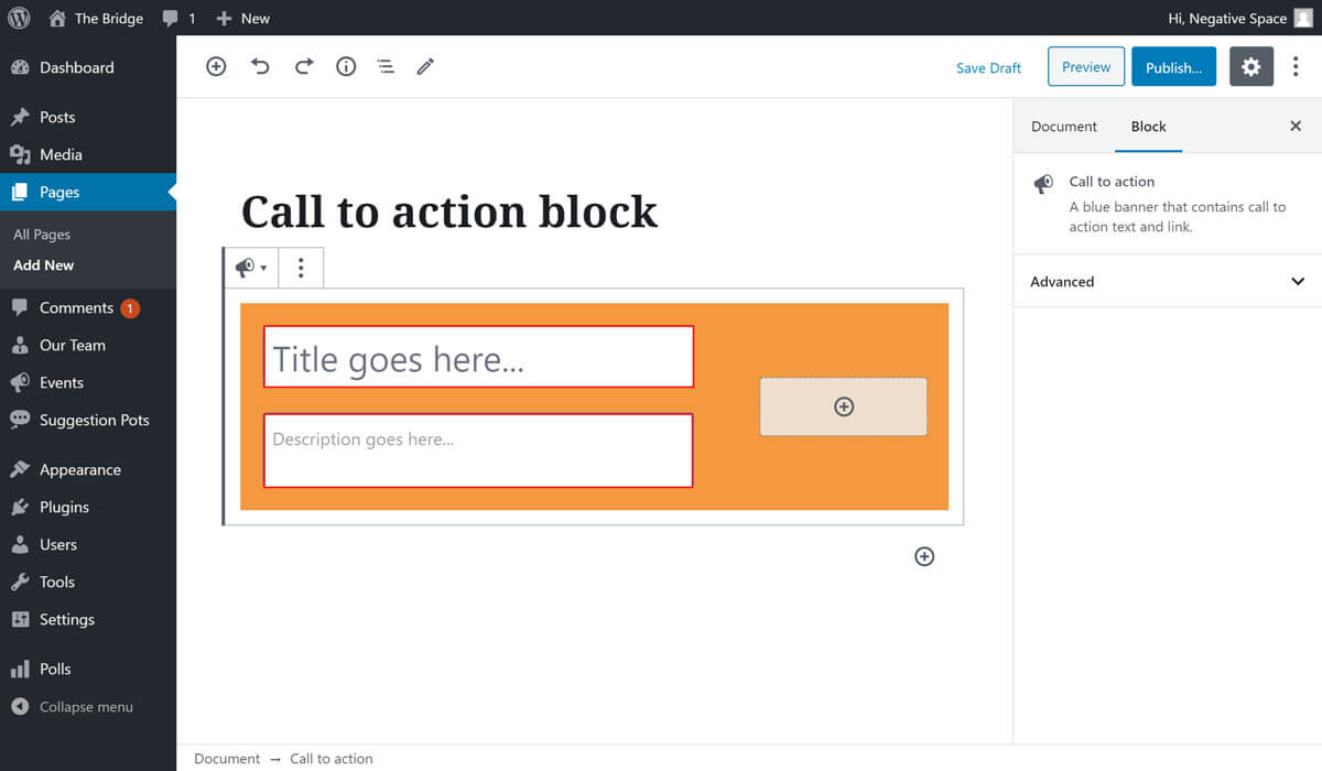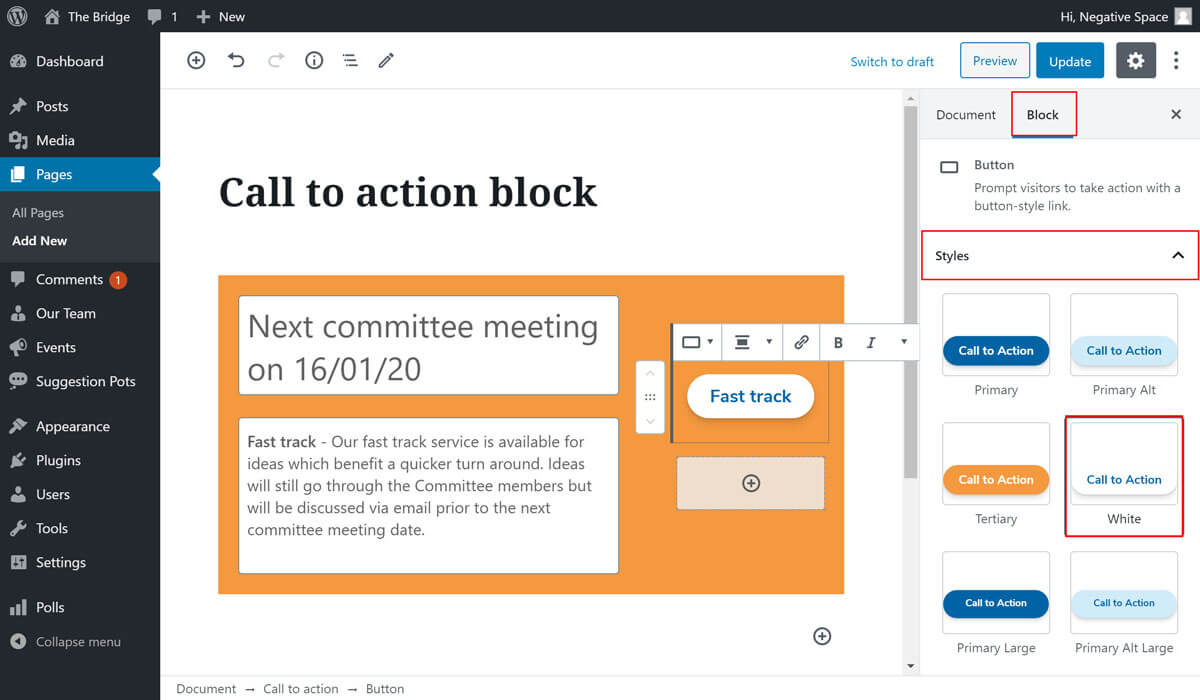 1. Select the Call To Action block