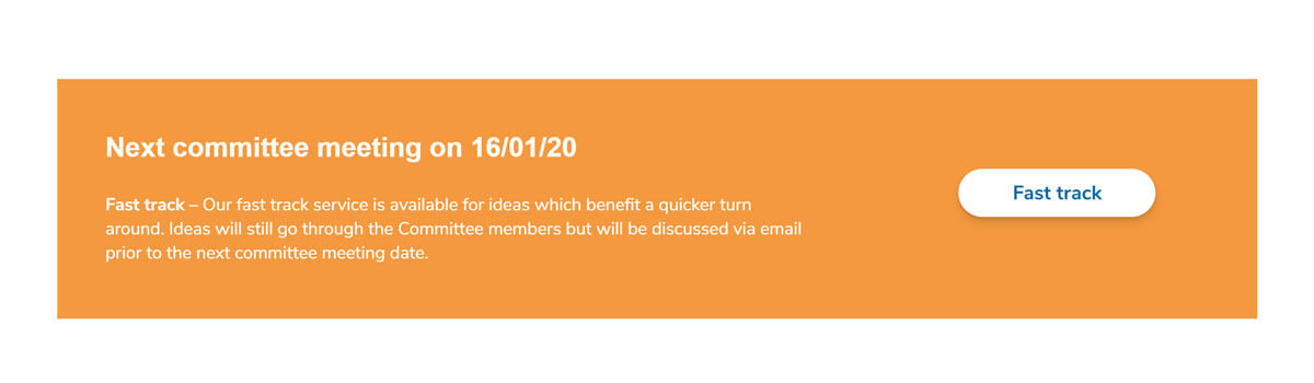 This is a custom block that displays a title, some text and an optional button (link) in an orange background as shown below.