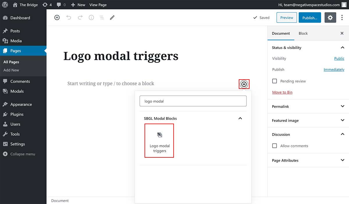 - Add or edit a page that uses the Gutenberg editor (e.g. Page or Post)