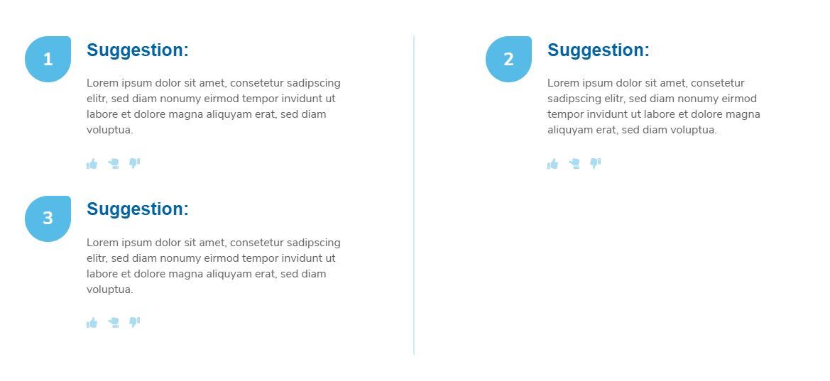 A Suggestion List block displays a numbered list of suggestions that have been either: