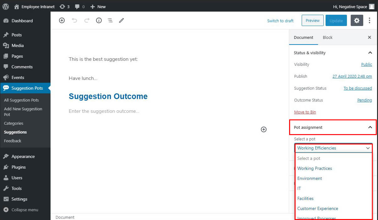 • Change the pot that the Suggestion was added to (e.g. there's a more appropriate pot for the Suggestion)